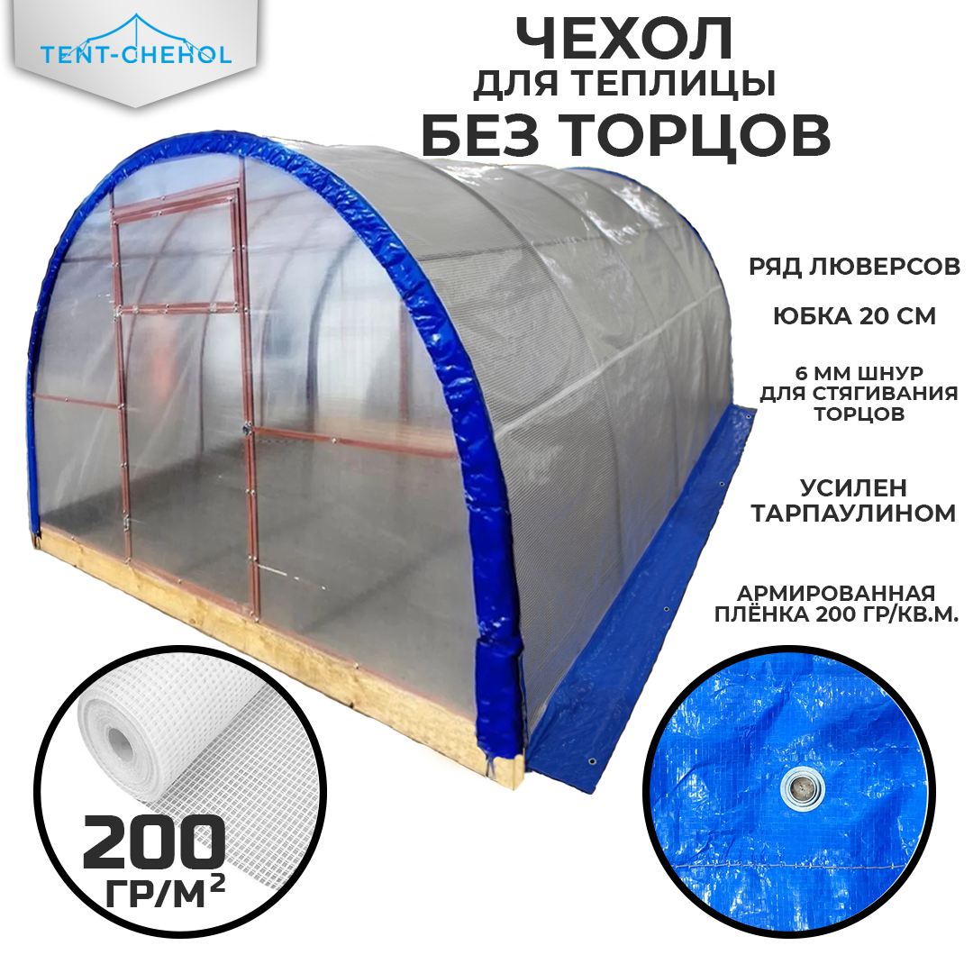 Чехол для теплицы без торцов из армированной пленки (полог, тент) 8х3х2.1м