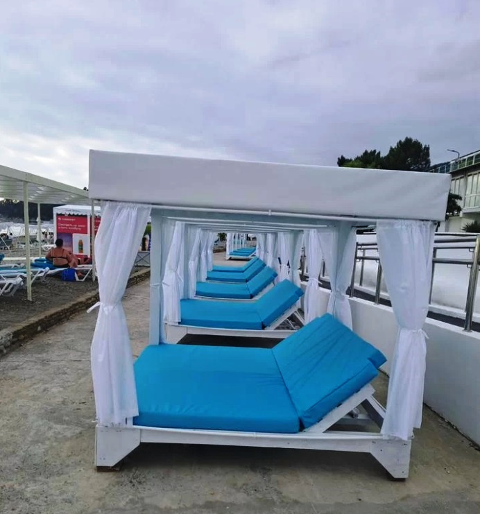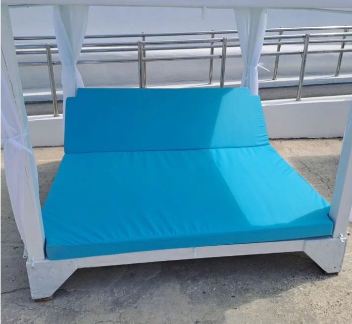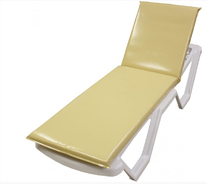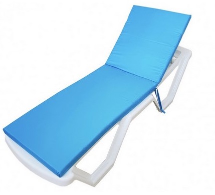 - Матрасы с чехлом несъёмным для шезлонгов пользуются огромной популярностью, после контакта с влагой они быстро сохнут на солнце, при этом не выгорают.