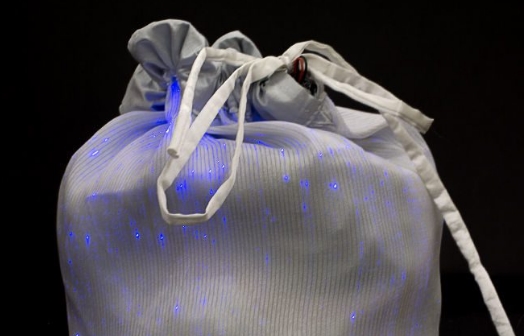 Вы можете приобрести мешочки из светодиодной ткани. Особенность таких мешочков заключается в том, что в ткань встроены светодиоды. Абсолютно по всей лицевой части ткани проходят специальные светодиоды, которые заставляют мешочек светиться. Питание светодиоды получают от литиевой батарейки, которая вшита в ткань. Также в ткань может быть вшит пульт управления, при помощи которого вы сможете управлять мешочком. Несмотря на то, что конструкция довольно сложная, материал довольно приятный на ощупь, он довольно гибкий. Светодиодный мешок с легкостью примет ту форму, которая вам нужна. Вы можете заказать мешочек красного, белого, синего, зелёного, жёлтого или чёрного цвета.