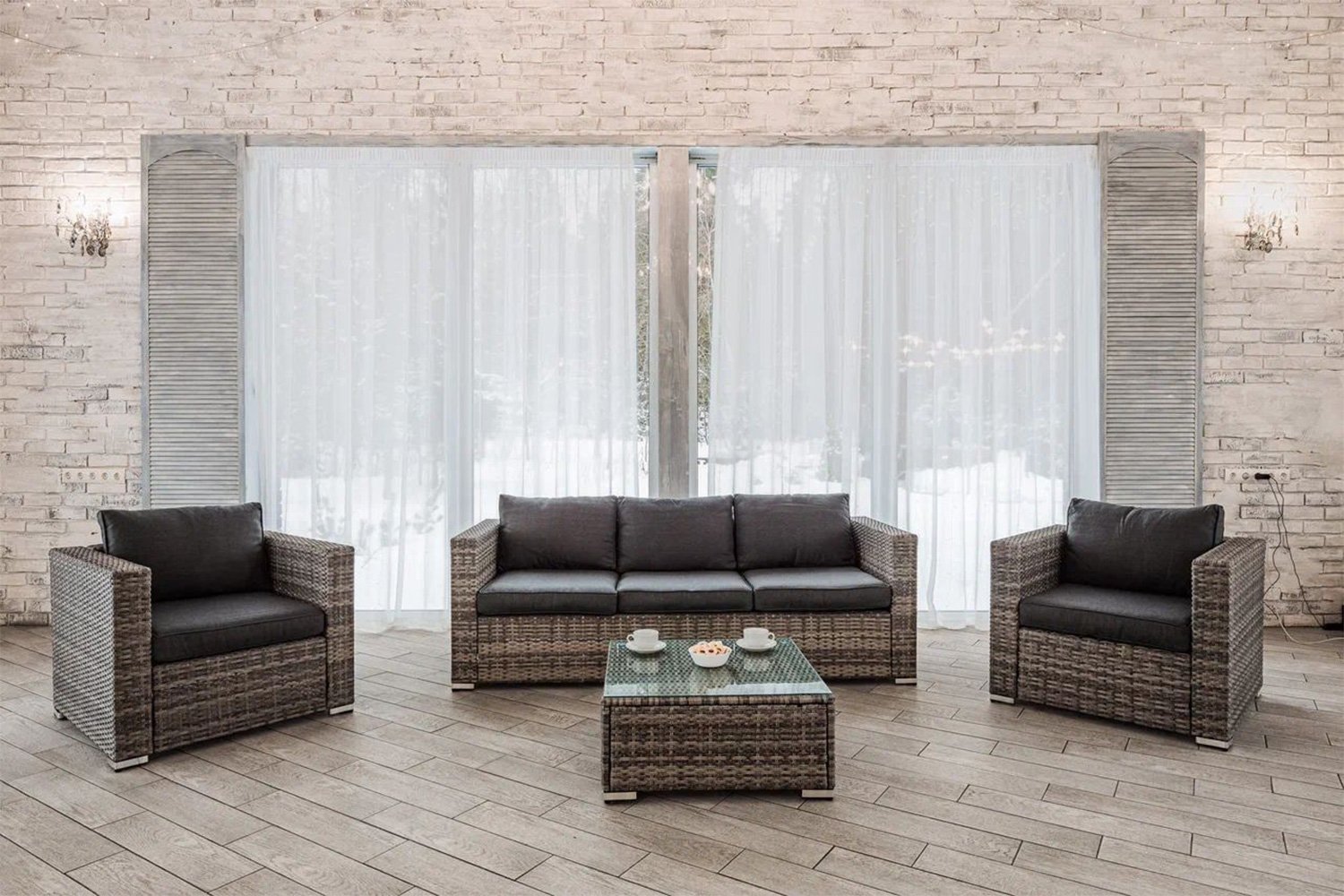 Мебель – важная часть любого обустройства пространства. И особенную роль она играет для зоны отдыха. Мебель «Карл» серого цвета – готовый набор мебели для размещения 5 человек в одном месте с небольшим столиком для напитков. Этот набор подойдет для использования в помещении, и даже на улице, причем в любой сезон – зима или лето.