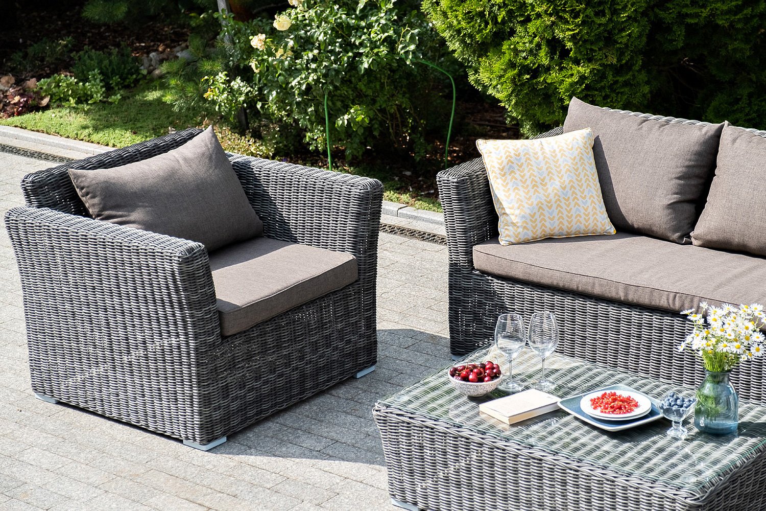 Кресло 4SiS Капучино серого цвета одна из таких моделей садовой мебели. Форма кресла квадратная, у него широкие подлокотники и небольшая спинка, а размеры 104х81,5х86,5 см. максимальная нагрузка на одно такое кресло – 150 кг, при его сравнительно небольшом весе в 21 кг. Добиться прочности и легкости конструкции позволяют материалы, из которых состоит кресло. Каркас состоит из алюминия, который покрыт искусственным ротангом, материалом, имитирующий переплетение настоящего дерева, но гораздо прочнее и долговечнее.