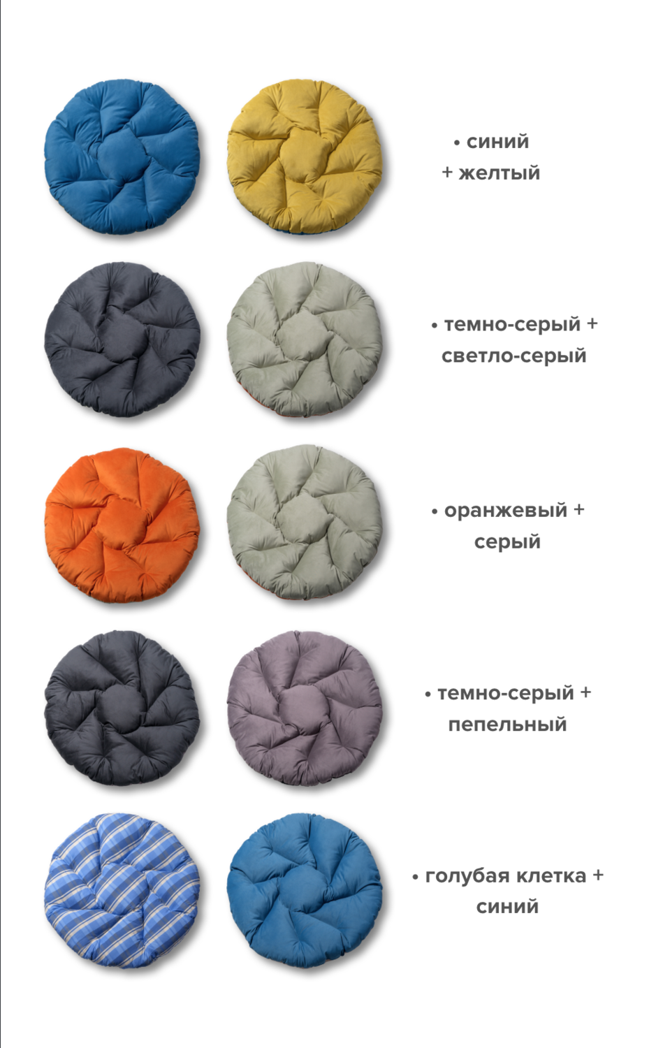 Влагоотталкивающие свойства, что делает его подходящим для использования на улице в любых погодных условиях. Набивка плотная, что обеспечивает комфортное сидение или лежание. Подушка имеет удобные завязки для крепления к качелям, шезлонгам, коконам и гнездам. Материал изделия легко стирается и сохраняет первоначальный вид на долгое время.Изделие подходит для использования как дома, так и на даче, в саду или на веранде. Этот аксессуар прекрасно сочетается с другой садовой мебелью и позволяет создать комфортную атмосферу на лужайке или в гамаке. Наполнение прочное и прочно держится внутри обивки, что делает ее максимально устойчивой к деформациям и сохраняет комфортный настроение при каждом использовании. Рекомендуем этот товар как отличный аксессуар для домашнего обихода ,плетеной мебели ,папасан. Сделает ваш отдых более комфортным и уютным, сохраняя при этом свою прочность и качество на долгие годы.