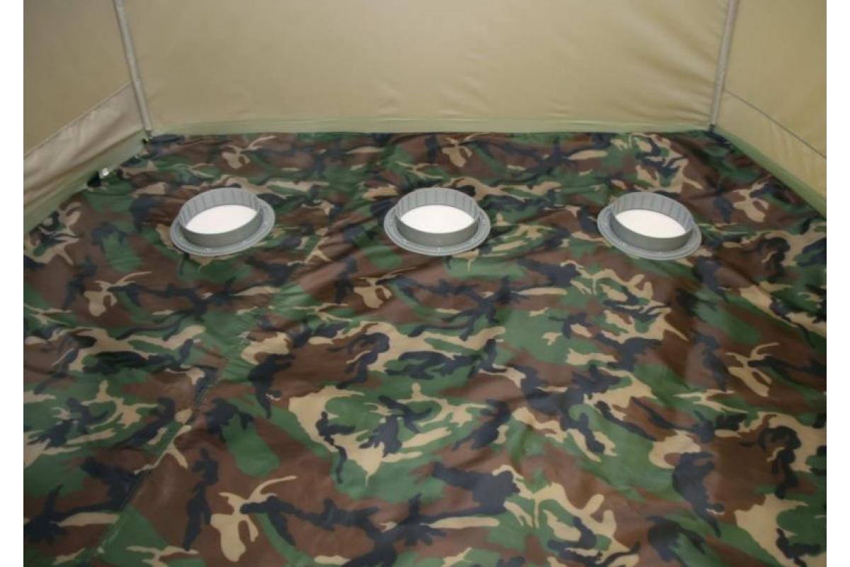 У нас вы можете приобрести такое изделие, как утеплённый пол для палатки с отверстиями. В таком изделии есть специальные отверстия для лунок. У пола форма пятигранника, он способен перекрыть абсолютно все поверхности на палатке. На изделии есть специальные отверстия под лунки, которые используются для того, чтобы ловить рыбу.