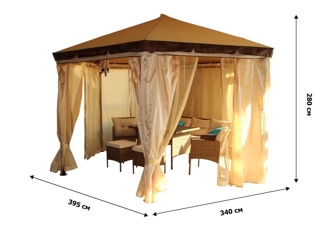 Габариты шатра (ШхДхВ) : 395х395х265 см