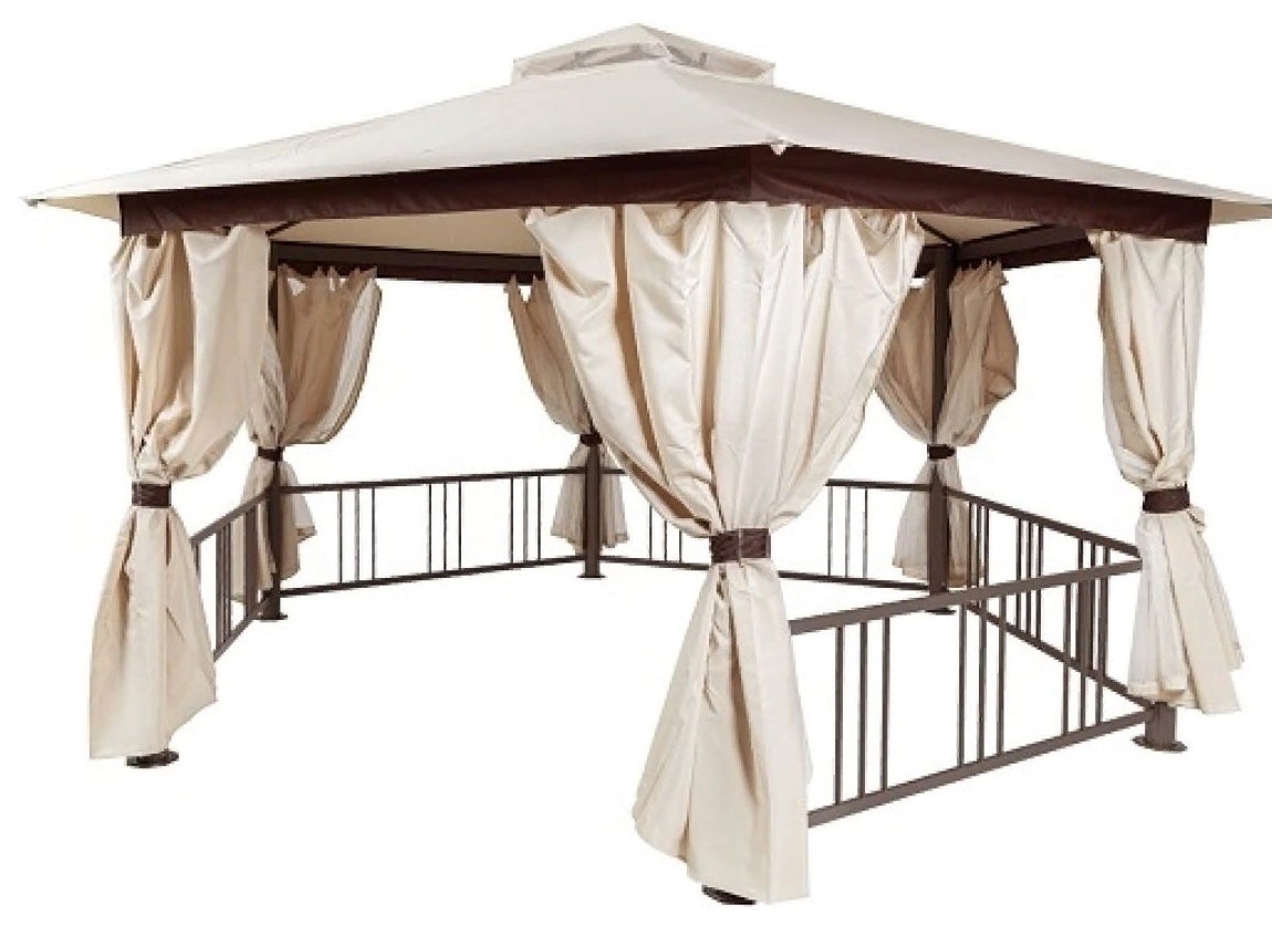 Мы предлагаем вам купить крышу-тент садовую Green Glade 1150. Данная крыша позволяет хорошо циркулировать воздуху внутри шатра. Подойдёт она для размеров конструкции 2,5 х 2,5 х 2,5 м. Выполнена крыша в бежевом цвете с коричневой окантовкой. Изготовлена данная крыша из полиэстера 180 г с полиуретановым покрытием, тент является водонепроницаемым. Такой тент не требует долговой установки, его максимально легко использовать.