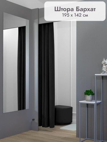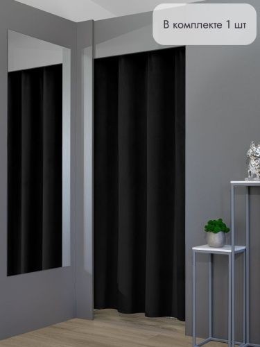 Штора для примерочной и дома на люверсах бархатная цвет черный, 1 шт.