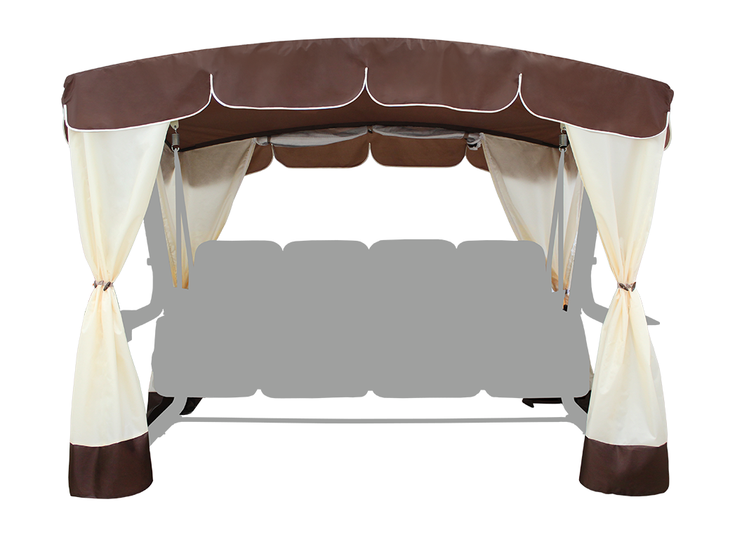 Тент – это красивое оформление садовых качелей, этот материал частично защищает от воздействия погодных условий. Идет в комплекте с мебелью, при его серьезном повреждении обшивку можно заменить, выбрав в каталоге подходящий вариант. Подробные характеристики представлены в описаниях к товарам на этой странице – ознакомьтесь с этой информацией и оформите заказ.
