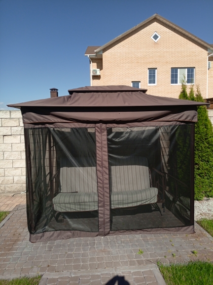 Краткое описание «Тент крыша с москитной сеткой на качели-шатер, цвет коричневый»