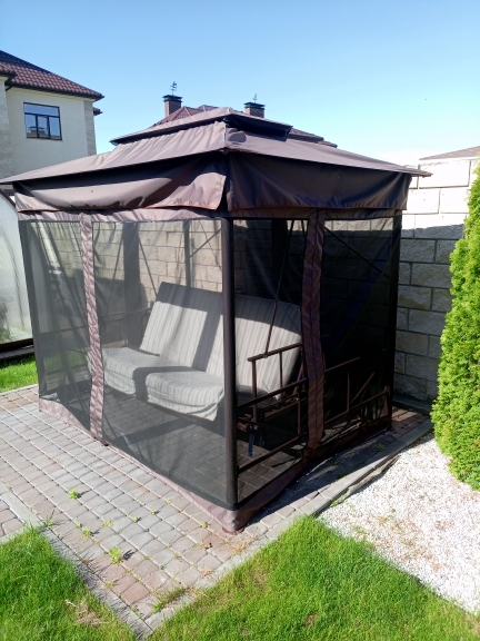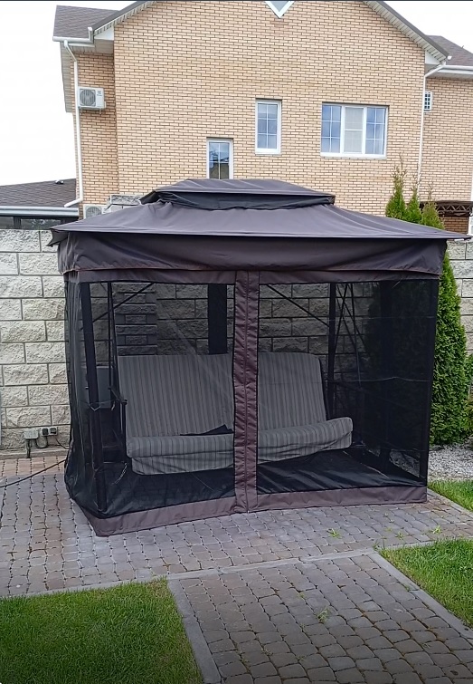Тент крыша с москитной сеткой на качели-шатер, цвет коричневый