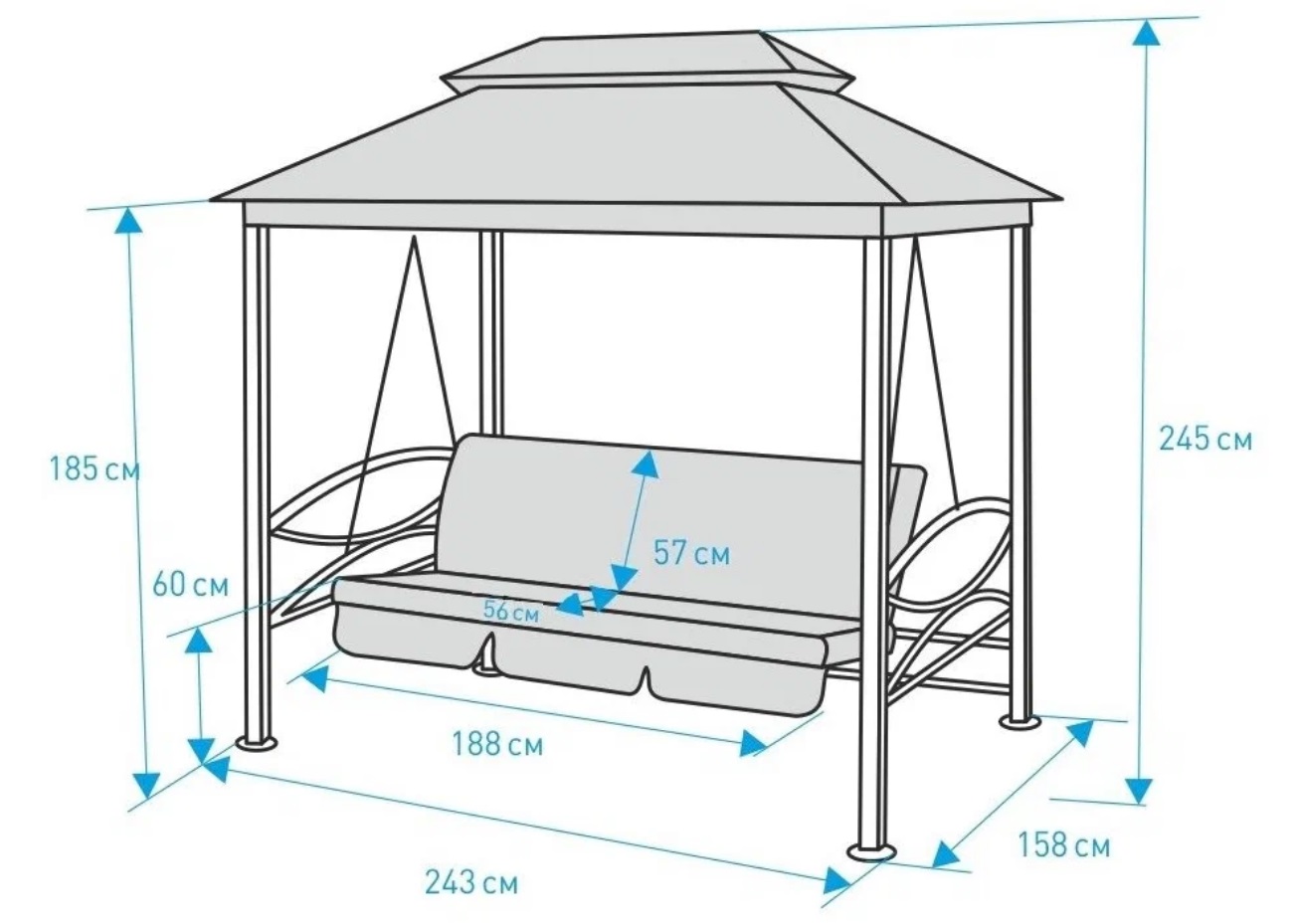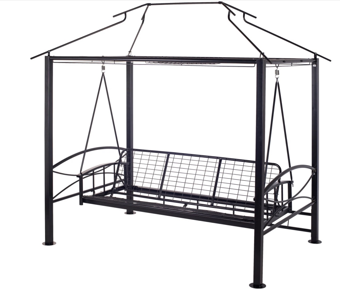 Стальной каркас обеспечивает повышенную надежность изделия. Диаметр трубы составляет 6 см. Качели-беседка «Амаре» не деформируются под воздействием солнца. Основа сиденья представляет собой крепкую и износостойкую наварную решетку. Конструкция имеет раскладной механизм.